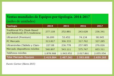 Por su parte, las ventas globales de dispositivos ultramóviles, que incluyen tablets y ordenadores portátiles, se dirigen a los 237 millones de unidades (+4,3%).